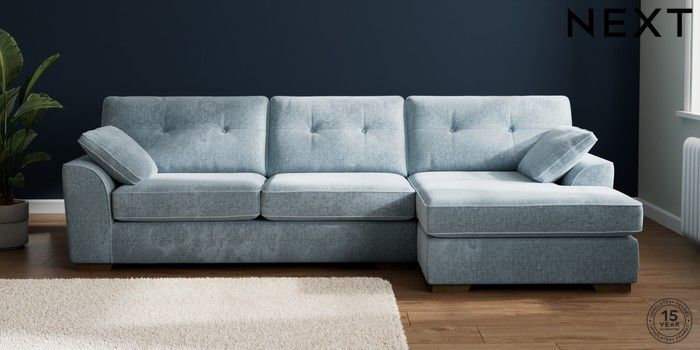 7.2.10 Buy Stamford Buttoned Back Large Sofa Chaise - Right Hand Plush Chenille Light Blue Large Square Angle - Mid from the Seasons online shop Click here to use our website with more accessibility support, for example screen readers