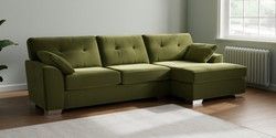 7.3.1 Buy Stamford Buttoned Back Large Sofa Chaise - Right Hand Plush Velvet Easy Clean Mid Olive Green Large Square Angle - Chrome Metal from the Seasons online shop Click here to use our website with more accessibility support, for example screen readers