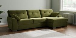 7.3.1 Buy Stamford Buttoned Back Large Sofa Chaise - Right Hand Plush Velvet Easy Clean Mid Olive Green Large Square Angle - Gunmetal from the Seasons online shop Click here to use our website with more accessibility support, for example screen readers