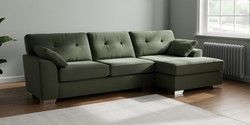 7.3.1 Buy Stamford Buttoned Back Large Sofa Chaise - Right Hand Relaxed Linen Look Dark Green Large Square Angle - Chrome Metal from the Seasons online shop Click here to use our website with more accessibility support, for example screen readers