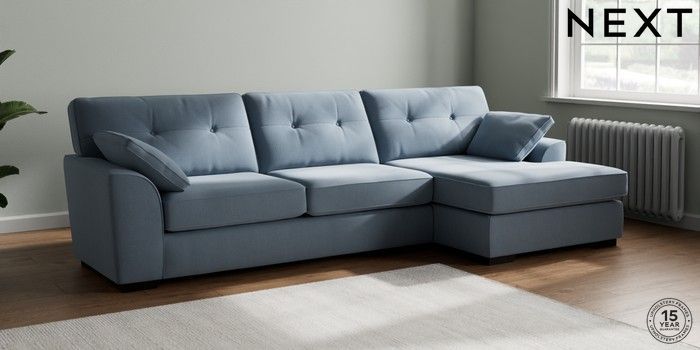 7.2.10 Buy Stamford Buttoned Back Large Sofa Chaise - Right Hand Relaxed Linen Look Mid Blue Large Square Angle - Dark from the Seasons online shop Click here to use our website with more accessibility support, for example screen readers