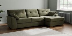 7.2.10 Buy Stamford Buttoned Back Large Sofa Chaise - Right Hand Ripple Chenille Mid Moss Green Large Square Angle - Brushed Brass from the Seasons online shop Click here to use our website with more accessibility support, for example screen readers