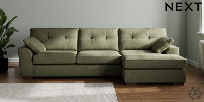7.2.10 Buy Stamford Buttoned Back Large Sofa Chaise - Right Hand Tweedy Chenille Mid Moss Green Large Square Angle - Mid from the Seasons online shop Click here to use our website with more accessibility support, for example screen readers