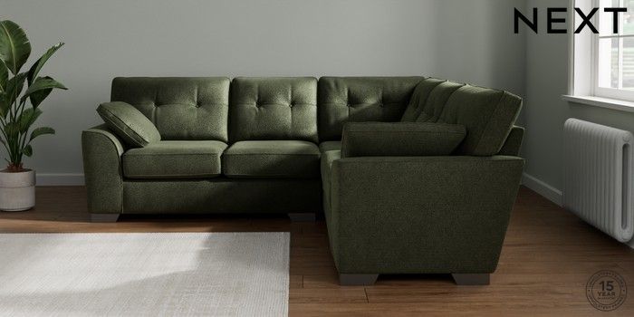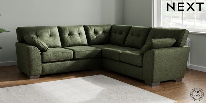 7.2.10 Buy Stamford Buttoned Back Medium Corner Sofa - Universal Boucle Chenille Dark Moss Green Large Square Angle - Gunmetal from the Seasons online shop Click here to use our website with more accessibility support, for example screen readers