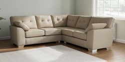 7.2.10 Buy Stamford Buttoned Back Medium Corner Sofa - Universal Boucle Weave Easy Clean Dark Natural Large Square Angle - Chrome Metal from the Seasons online shop Click here to use our website with more accessibility support, for example screen readers