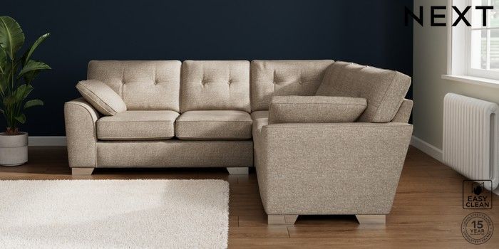 7.2.10 Buy Stamford Buttoned Back Medium Corner Sofa - Universal Chunky Boucle Easy Clean Mid Natural Large Square Angle - Chrome Metal from the Seasons online shop Click here to use our website with more accessibility support, for example screen readers
