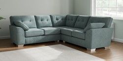 7.2.10 Buy Stamford Buttoned Back Medium Corner Sofa - Universal Chunky Chenille Light Teal Green Large Square Angle - Chrome Metal from the Seasons online shop Click here to use our website with more accessibility support, for example screen readers