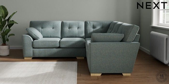 7.2.10 Buy Stamford Buttoned Back Medium Corner Sofa - Universal Chunky Marl Mid Blue Large Square Angle - Light from the Seasons online shop Click here to use our website with more accessibility support, for example screen readers