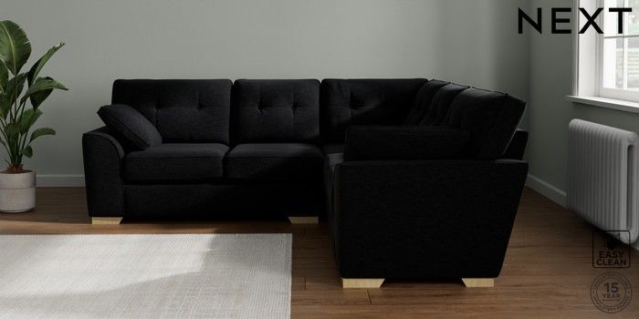 7.2.10 Buy Stamford Buttoned Back Medium Corner Sofa - Universal Fine Chenille Easy Clean Black Large Square Angle - Light from the Seasons online shop Click here to use our website with more accessibility support, for example screen readers
