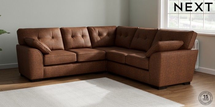 7.2.10 Buy Stamford Buttoned Back Medium Corner Sofa - Universal Monza Faux Leather Easy Clean Chestnut Brown Large Square Angle - Dark from the Seasons online shop Click here to use our website with more accessibility support, for example screen readers