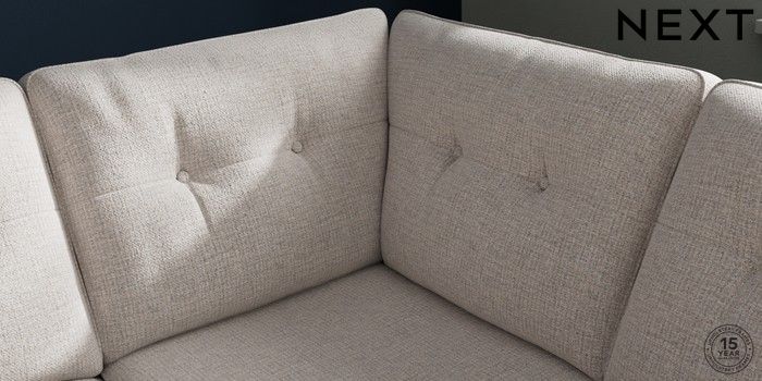 7.2.10 Buy Stamford Buttoned Back Medium Corner Sofa - Universal Multi Weave Oyster Large Square Angle - Chrome Metal from the Seasons online shop Click here to use our website with more accessibility support, for example screen readers
