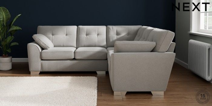 7.2.10 Buy Stamford Buttoned Back Medium Corner Sofa - Universal Natural Mix Light Grey Large Square Angle - Chrome Metal from the Seasons online shop Click here to use our website with more accessibility support, for example screen readers