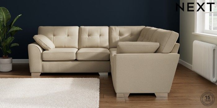 7.2.10 Buy Stamford Buttoned Back Medium Corner Sofa - Universal Natural Mix Light Natural Large Square Angle - Chrome Metal from the Seasons online shop Click here to use our website with more accessibility support, for example screen readers
