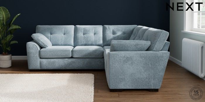 7.2.10 Buy Stamford Buttoned Back Medium Corner Sofa - Universal Plush Chenille Light Blue Large Square Angle - Dark from the Seasons online shop Click here to use our website with more accessibility support, for example screen readers