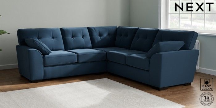 7.2.10 Buy Stamford Buttoned Back Medium Corner Sofa - Universal Plush Velvet Easy Clean Airforce Blue Large Square Angle - Dark from the Seasons online shop Click here to use our website with more accessibility support, for example screen readers