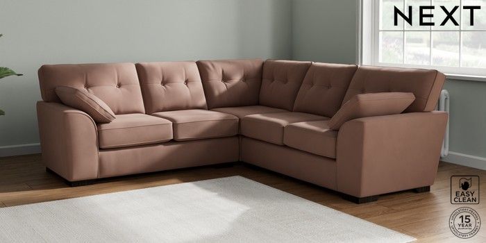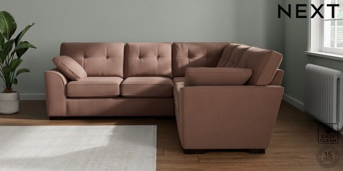 7.2.10 Buy Stamford Buttoned Back Medium Corner Sofa - Universal Plush Velvet Easy Clean Mid Natural Large Square Angle - Dark from the Seasons online shop Click here to use our website with more accessibility support, for example screen readers