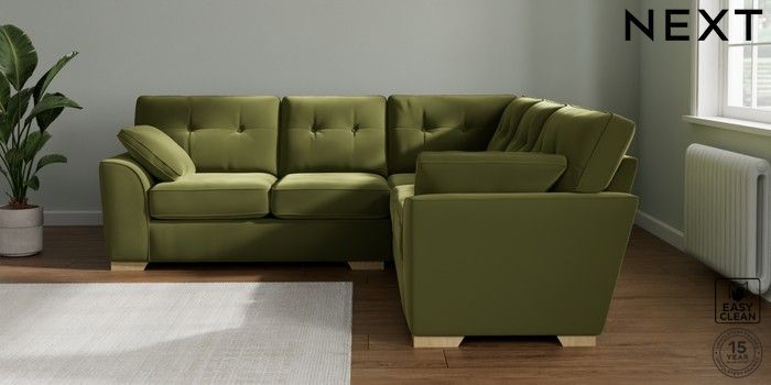 7.2.10 Buy Stamford Buttoned Back Medium Corner Sofa - Universal Plush Velvet Easy Clean Mid Olive Green Large Square Angle - Light from the Seasons online shop Click here to use our website with more accessibility support, for example screen readers