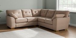7.2.10 Buy Stamford Buttoned Back Medium Corner Sofa - Universal Relaxed Linen Look Mid Natural Large Square Angle - Brushed Brass from the Seasons online shop Click here to use our website with more accessibility support, for example screen readers