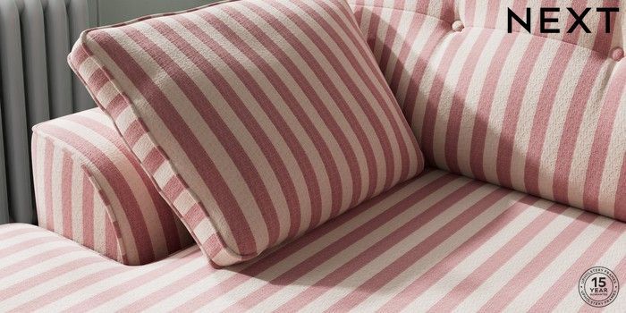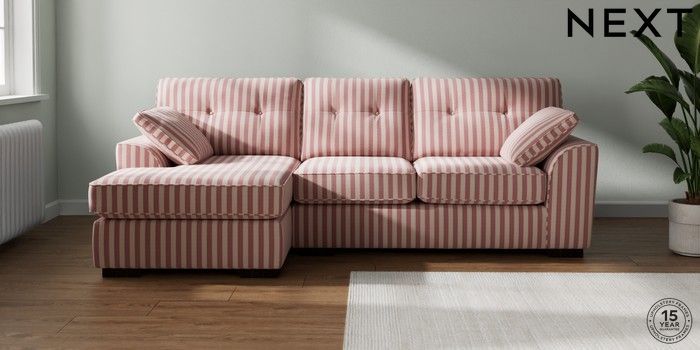 7.3.1 Buy Stamford Buttoned Back Medium Sofa Chaise - Left Hand Bold Chenille Stripe Dark Pink Large Square Angle - Dark from the Seasons online shop Click here to use our website with more accessibility support, for example screen readers