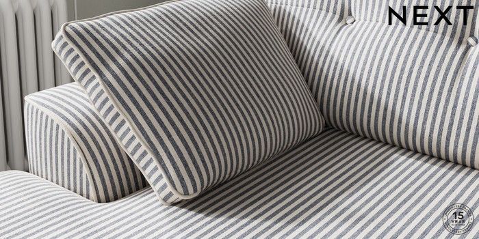 7.3.1 Buy Stamford Buttoned Back Medium Sofa Chaise - Left Hand Chenille Stripe Slate Blue Large Square Angle - Dark from the Seasons online shop Click here to use our website with more accessibility support, for example screen readers