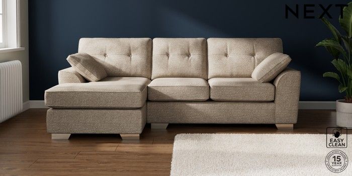 7.2.10 Buy Stamford Buttoned Back Medium Sofa Chaise - Left Hand Chunky Boucle Easy Clean Mid Natural Large Square Angle - Chrome Metal from the Seasons online shop Click here to use our website with more accessibility support, for example screen readers