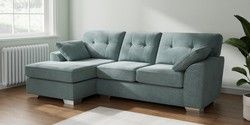 7.2.10 Buy Stamford Buttoned Back Medium Sofa Chaise - Left Hand Chunky Chenille Light Teal Green Large Square Angle - Chrome Metal from the Seasons online shop Click here to use our website with more accessibility support, for example screen readers