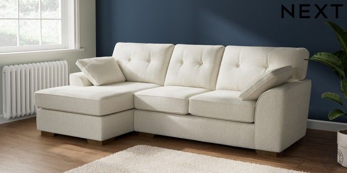 7.2.10 Buy Stamford Buttoned Back Medium Sofa Chaise - Left Hand Chunky Texture Oyster Large Square Angle - Mid from the Seasons online shop Click here to use our website with more accessibility support, for example screen readers