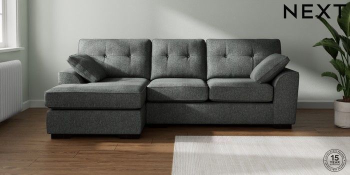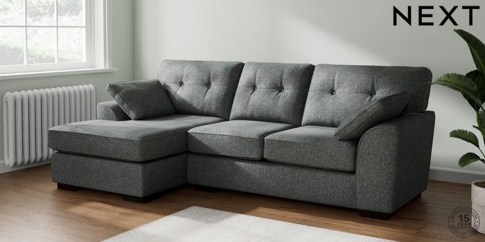 7.2.10 Buy Stamford Buttoned Back Medium Sofa Chaise - Left Hand Cotswold Chenille Dark Grey Large Square Angle - Dark from the Seasons online shop Click here to use our website with more accessibility support, for example screen readers