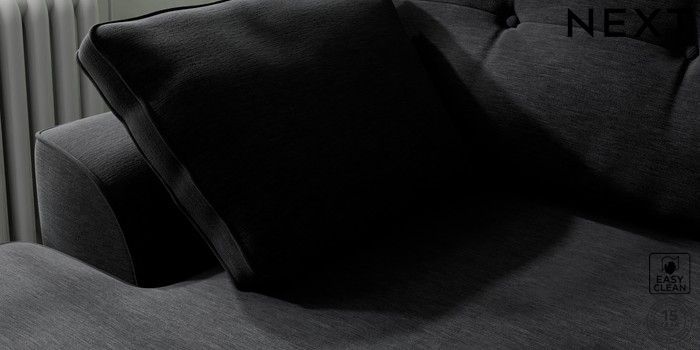 7.2.10 Buy Stamford Buttoned Back Medium Sofa Chaise - Left Hand Fine Chenille Easy Clean Black Large Square Angle - Brushed Brass from the Seasons online shop Click here to use our website with more accessibility support, for example screen readers