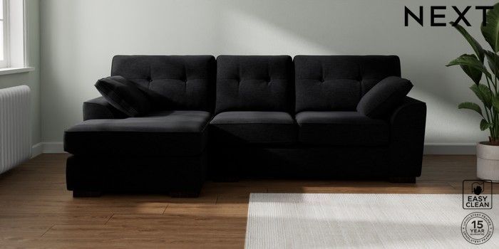 7.2.10 Buy Stamford Buttoned Back Medium Sofa Chaise - Left Hand Fine Chenille Easy Clean Black Large Square Angle - Dark from the Seasons online shop Click here to use our website with more accessibility support, for example screen readers