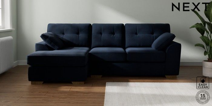 7.2.10 Buy Stamford Buttoned Back Medium Sofa Chaise - Left Hand Fine Chenille Easy Clean Dark Navy Blue Large Square Angle - Mid from the Seasons online shop Click here to use our website with more accessibility support, for example screen readers