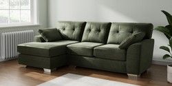 7.2.10 Buy Stamford Buttoned Back Medium Sofa Chaise - Left Hand Luxe Chenille Mid Green Large Square Angle - Chrome Metal from the Seasons online shop Click here to use our website with more accessibility support, for example screen readers