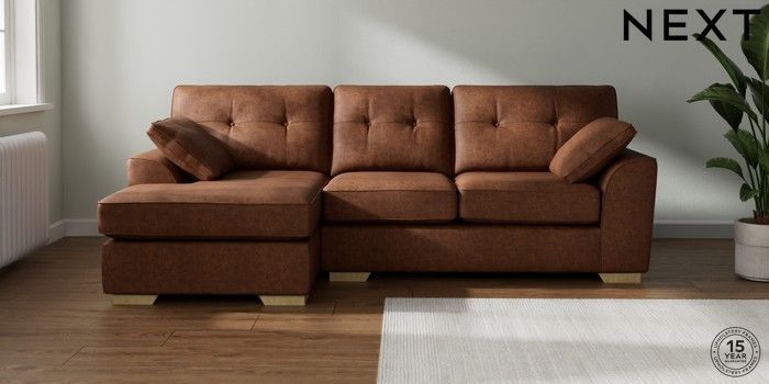 7.2.10 Buy Stamford Buttoned Back Medium Sofa Chaise - Left Hand Monza Faux Leather Easy Clean Chestnut Brown Large Square Angle - Light from the Seasons online shop Click here to use our website with more accessibility support, for example screen readers