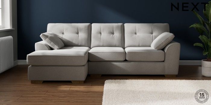 7.2.10 Buy Stamford Buttoned Back Medium Sofa Chaise - Left Hand Natural Mix Light Grey Large Square Angle - Mid from the Seasons online shop Click here to use our website with more accessibility support, for example screen readers