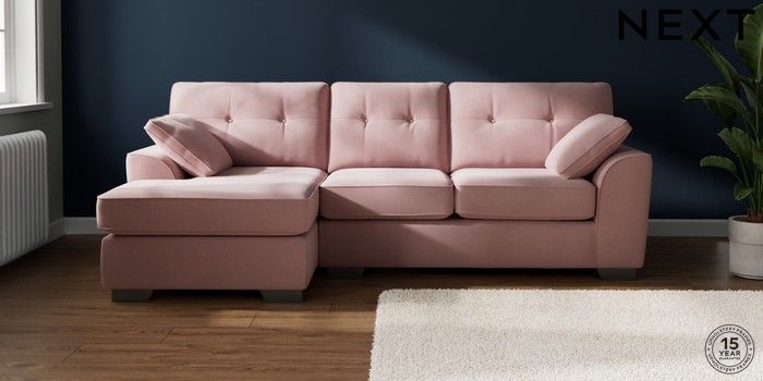 7.3.1 Buy Stamford Buttoned Back Medium Sofa Chaise - Left Hand Natural Mix Light Rose Pink Large Square Angle - Gunmetal from the Seasons online shop Click here to use our website with more accessibility support, for example screen readers