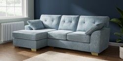7.2.10 Buy Stamford Buttoned Back Medium Sofa Chaise - Left Hand Plush Chenille Light Blue Large Square Angle - Brushed Brass from the Seasons online shop Click here to use our website with more accessibility support, for example screen readers