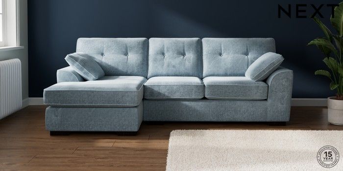 7.2.10 Buy Stamford Buttoned Back Medium Sofa Chaise - Left Hand Plush Chenille Light Blue Large Square Angle - Dark from the Seasons online shop Click here to use our website with more accessibility support, for example screen readers