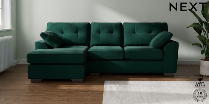 7.3.1 Buy Stamford Buttoned Back Medium Sofa Chaise - Left Hand Plush Velvet Easy Clean Bottle Green Large Square Angle - Gunmetal from the Seasons online shop Click here to use our website with more accessibility support, for example screen readers