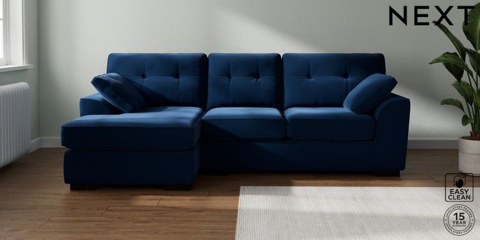 7.2.10 Buy Stamford Buttoned Back Medium Sofa Chaise - Left Hand Plush Velvet Easy Clean Navy Blue Large Square Angle - Dark from the Seasons online shop Click here to use our website with more accessibility support, for example screen readers
