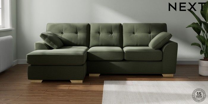 7.2.10 Buy Stamford Buttoned Back Medium Sofa Chaise - Left Hand Relaxed Linen Look Dark Green Large Square Angle - Light from the Seasons online shop Click here to use our website with more accessibility support, for example screen readers