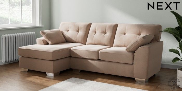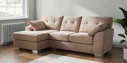 7.3.1 Buy Stamford Buttoned Back Medium Sofa Chaise - Left Hand Relaxed Linen Look Mid Natural Large Square Angle - Chrome Metal from the Seasons online shop Click here to use our website with more accessibility support, for example screen readers