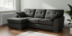 7.3.1 Buy Stamford Buttoned Back Medium Sofa Chaise - Left Hand Tweedy Blend Easy Clean Charcoal Grey Large Square Angle - Gunmetal from the Seasons online shop Click here to use our website with more accessibility support, for example screen readers