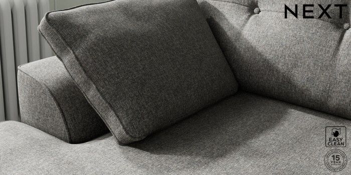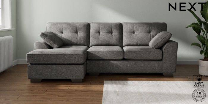 7.3.1 Buy Stamford Buttoned Back Medium Sofa Chaise - Left Hand Tweedy Blend Easy Clean Dark Grey Large Square Angle - Gunmetal from the Seasons online shop Click here to use our website with more accessibility support, for example screen readers