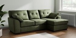 7.2.10 Buy Stamford Buttoned Back Medium Sofa Chaise - Right Hand Boucle Chenille Dark Moss Green Large Square Angle - Dark from the Seasons online shop Click here to use our website with more accessibility support, for example screen readers