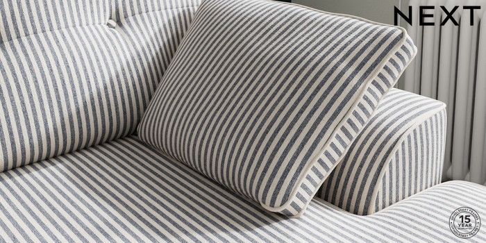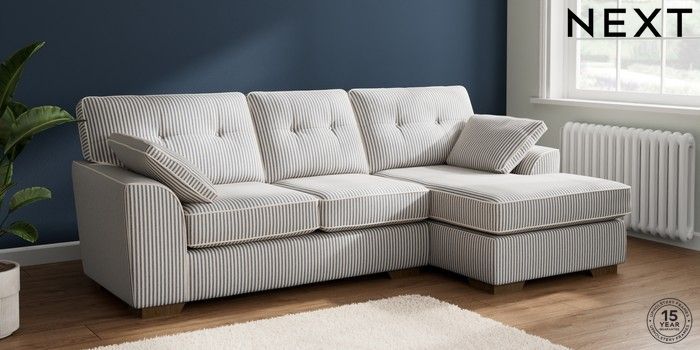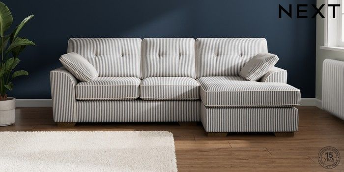 7.3.1 Buy Stamford Buttoned Back Medium Sofa Chaise - Right Hand Chenille Stripe Slate Blue Large Square Angle - Mid from the Seasons online shop Click here to use our website with more accessibility support, for example screen readers