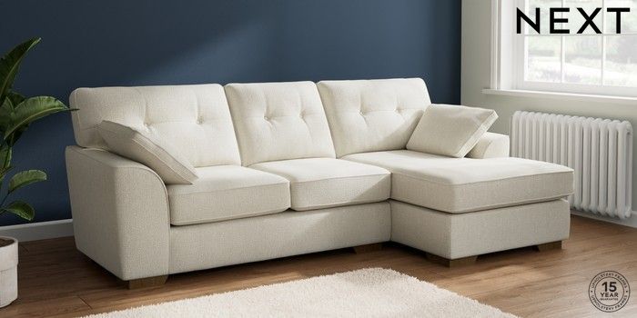 7.2.10 Buy Stamford Buttoned Back Medium Sofa Chaise - Right Hand Chunky Texture Oyster Large Square Angle - Mid from the Seasons online shop Click here to use our website with more accessibility support, for example screen readers