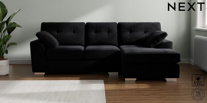 7.2.10 Buy Stamford Buttoned Back Medium Sofa Chaise - Right Hand Fine Chenille Easy Clean Black Large Square Angle - Chrome Metal from the Seasons online shop Click here to use our website with more accessibility support, for example screen readers