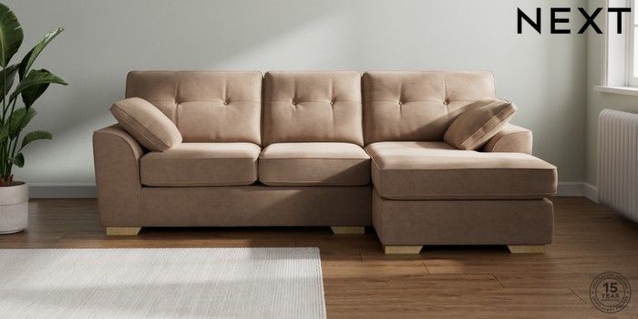 7.2.10 Buy Stamford Buttoned Back Medium Sofa Chaise - Right Hand Luxe Chenille Mid Natural Large Square Angle - Light from the Seasons online shop Click here to use our website with more accessibility support, for example screen readers