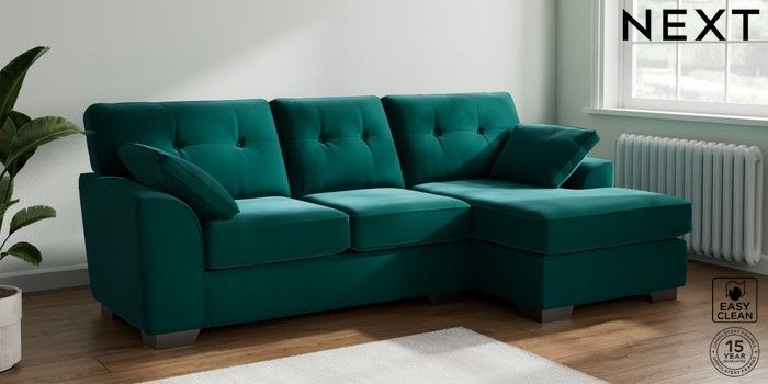 7.3.1 Buy Stamford Buttoned Back Medium Sofa Chaise - Right Hand Plush Velvet Easy Clean Juniper Green Large Square Angle - Gunmetal from the Seasons online shop Click here to use our website with more accessibility support, for example screen readers