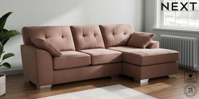 7.3.1 Buy Stamford Buttoned Back Medium Sofa Chaise - Right Hand Plush Velvet Easy Clean Mid Natural Large Square Angle - Chrome Metal from the Seasons online shop Click here to use our website with more accessibility support, for example screen readers